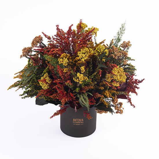 Garden Party è una box di fiori stabilizzati dai toni caldi e vivaci: giallo, ruggine, rosso e verde si intrecciano in una composizione ricca e piena di movimento. Perfetta per dare energia e colore a qualsiasi ambiente, con la praticità di una bellezza che dura nel tempo.