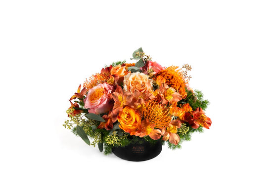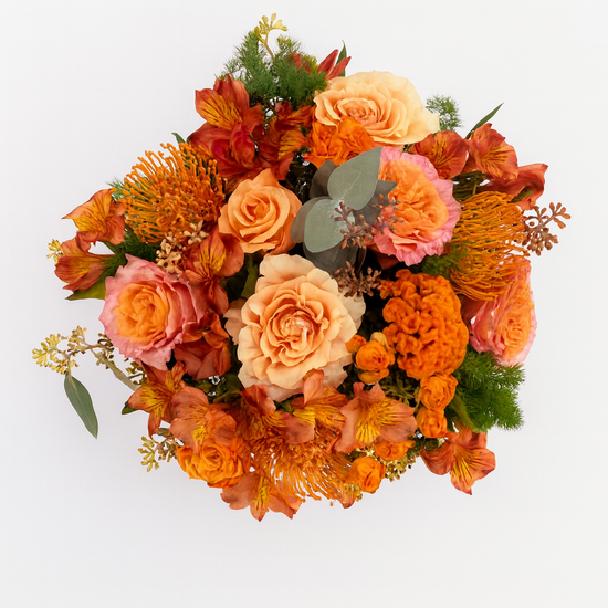 Una composizione CentroTavola nei toni caldi dell’arancio, ispirata alla luce dorata dei tramonti romani.